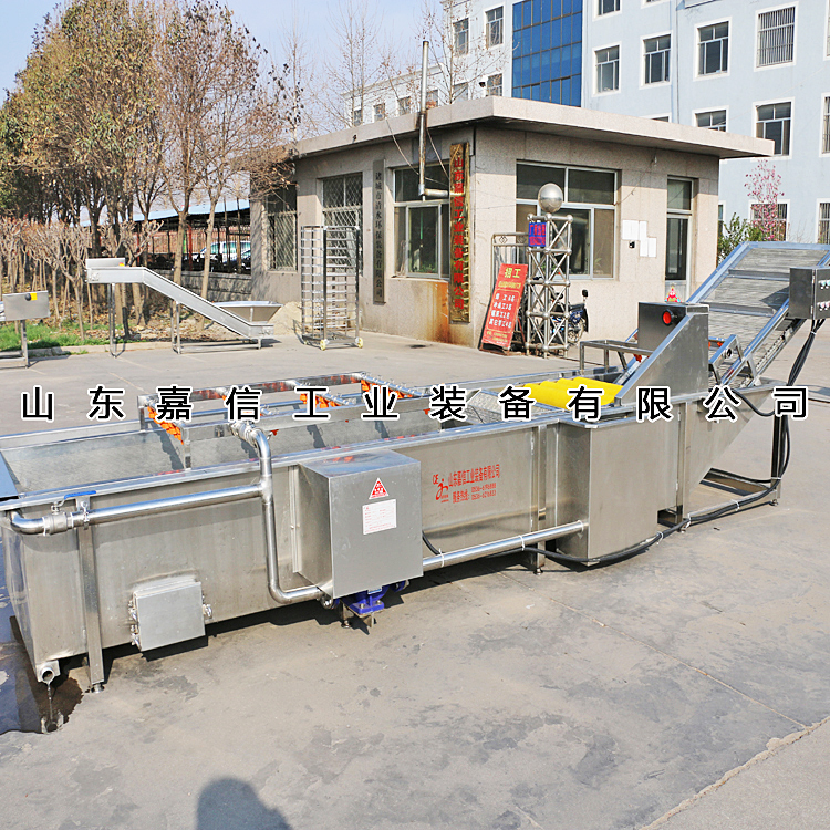 該機(jī)有氣泡發(fā)生裝置,物料呈翻滾狀態(tài),浸泡均勻。漂浮物可以從溢流槽溢出,沉淀物從排污口排出,,經(jīng)噴淋清洗后,提升輸送到下道工序,介質(zhì)水可過濾循環(huán)使用。清潔效率高,實(shí)用性強(qiáng),節(jié)水節(jié)能,是清洗加工的理想設(shè)備。該機(jī)分為清洗翻浪段、二次清水噴淋段。
